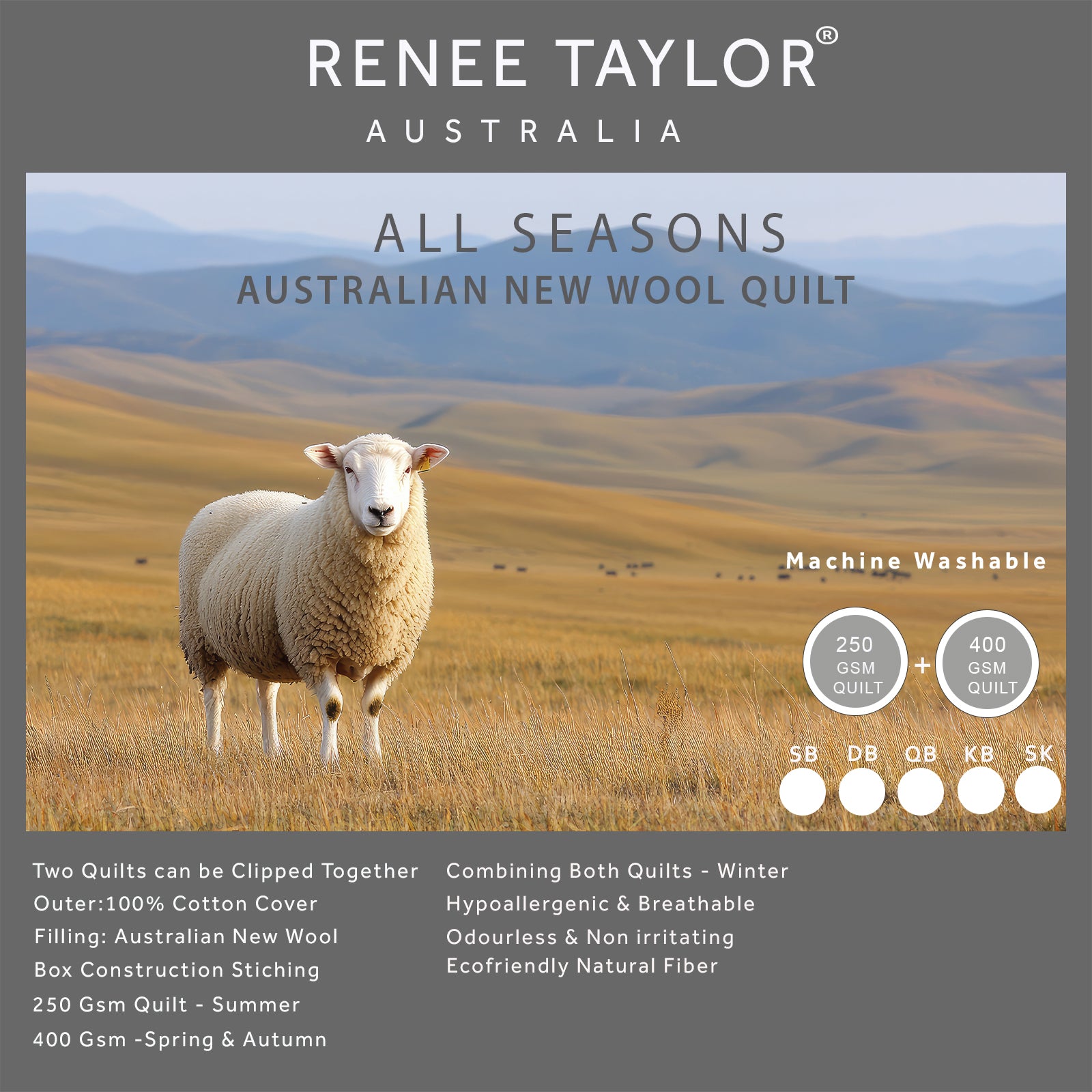 Renee Taylor All Seasons 2 in 1 Australian Wool Quilt