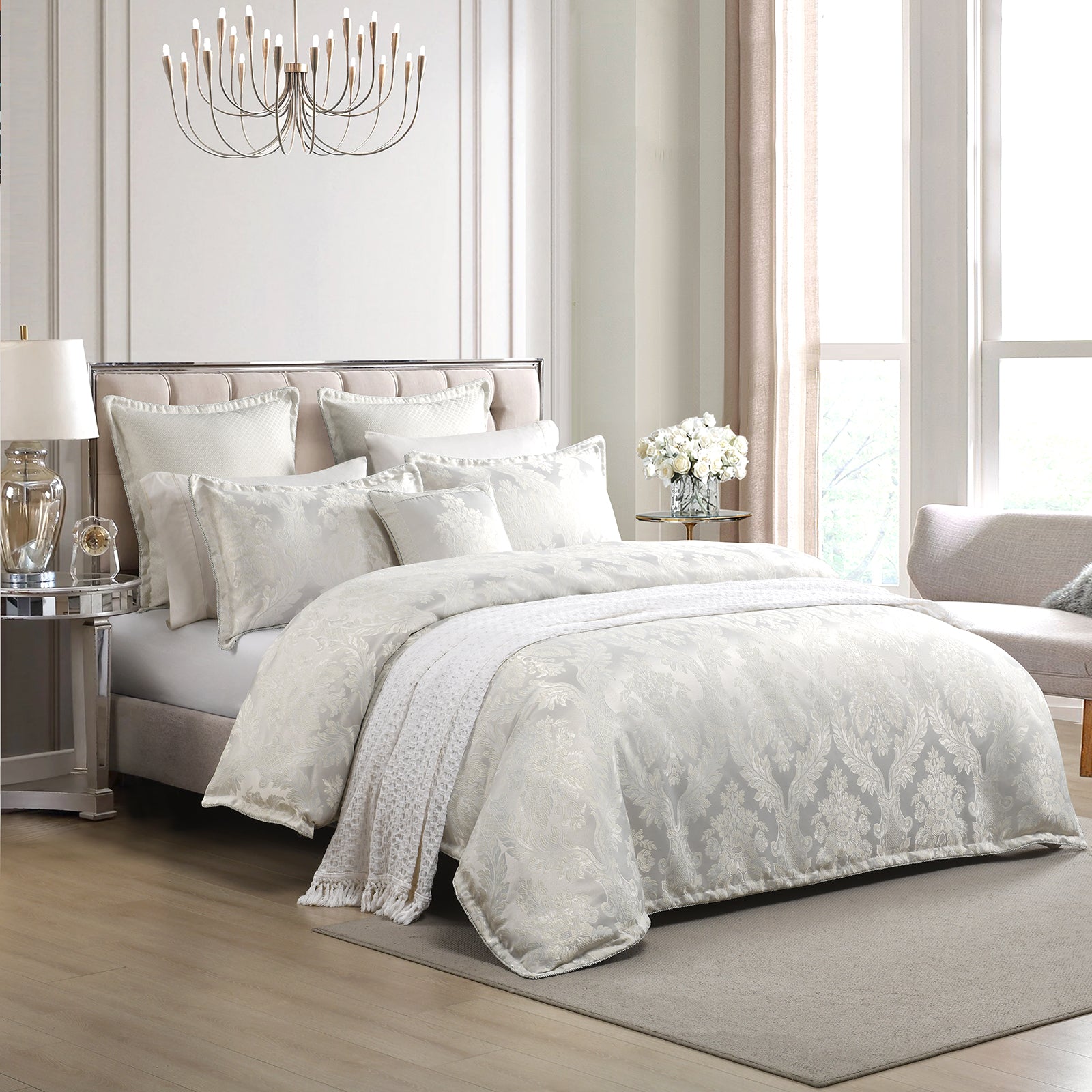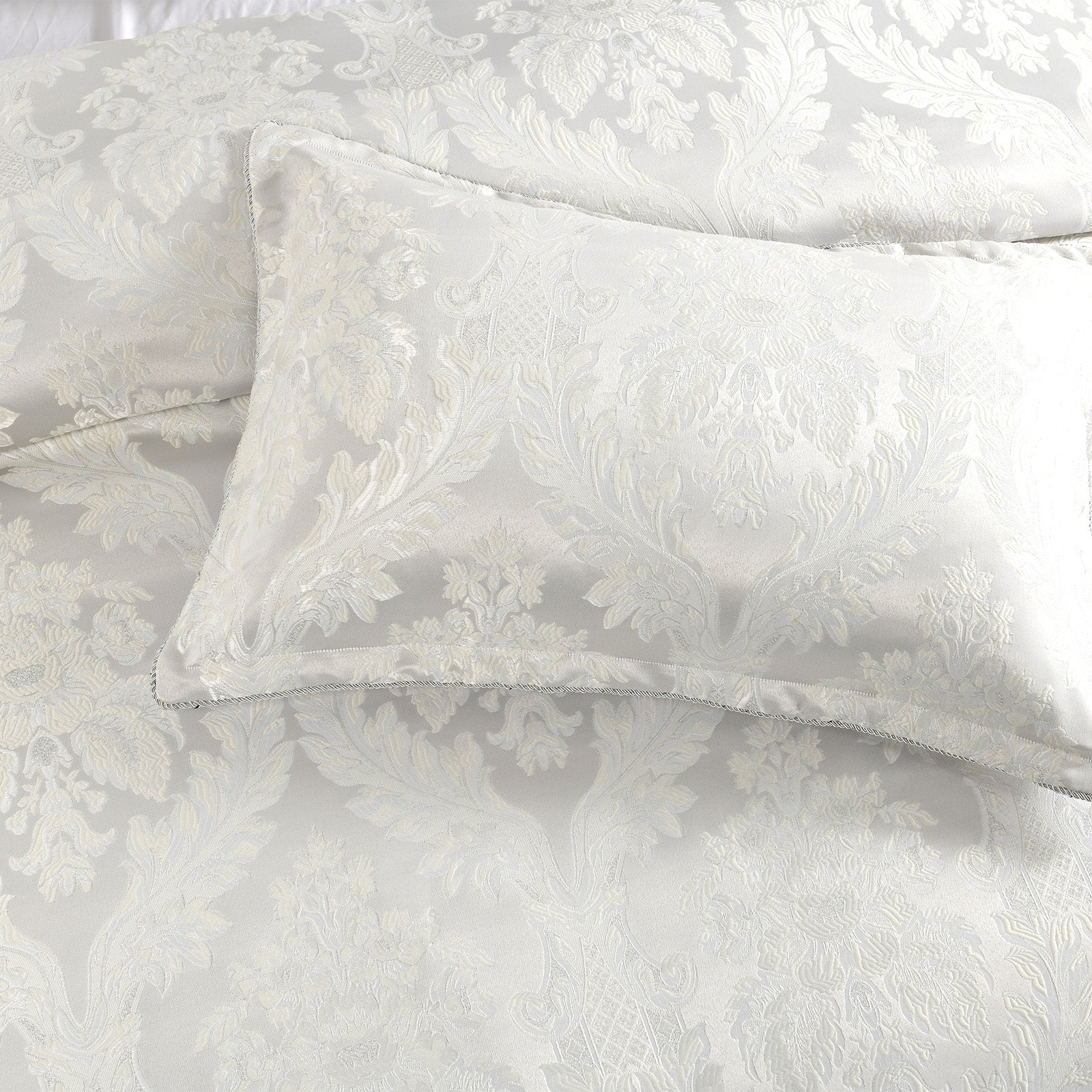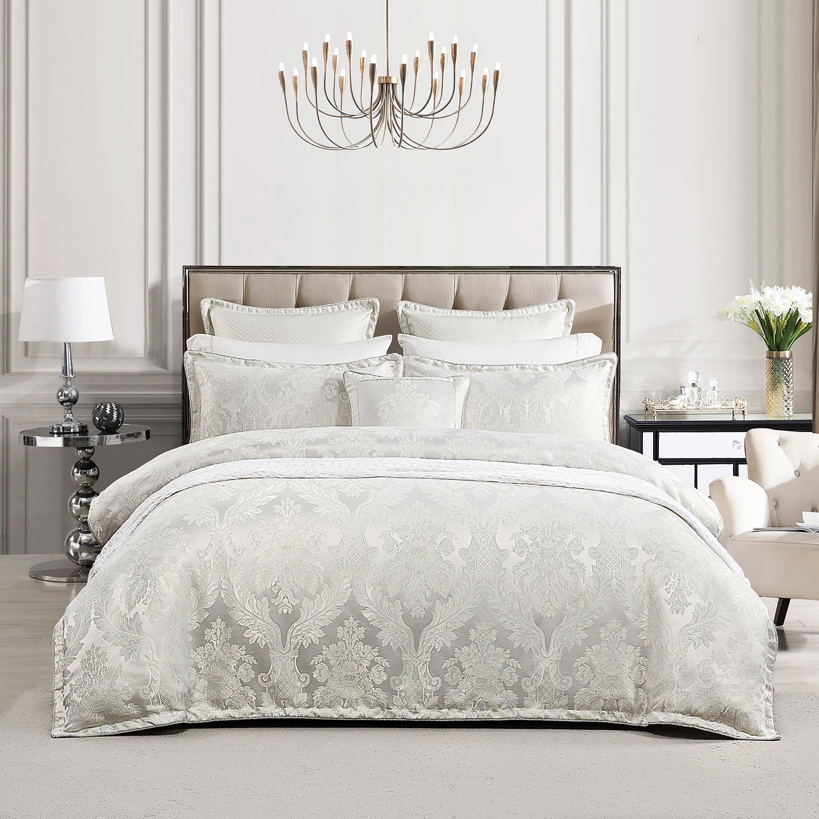 Classic luxury and graceful style. Amalia Quilt Cover is stunning design features a beautifully textured jacquard damask, blending white, ivory, and silver threads for a soft shimmer and a truly elevated look.