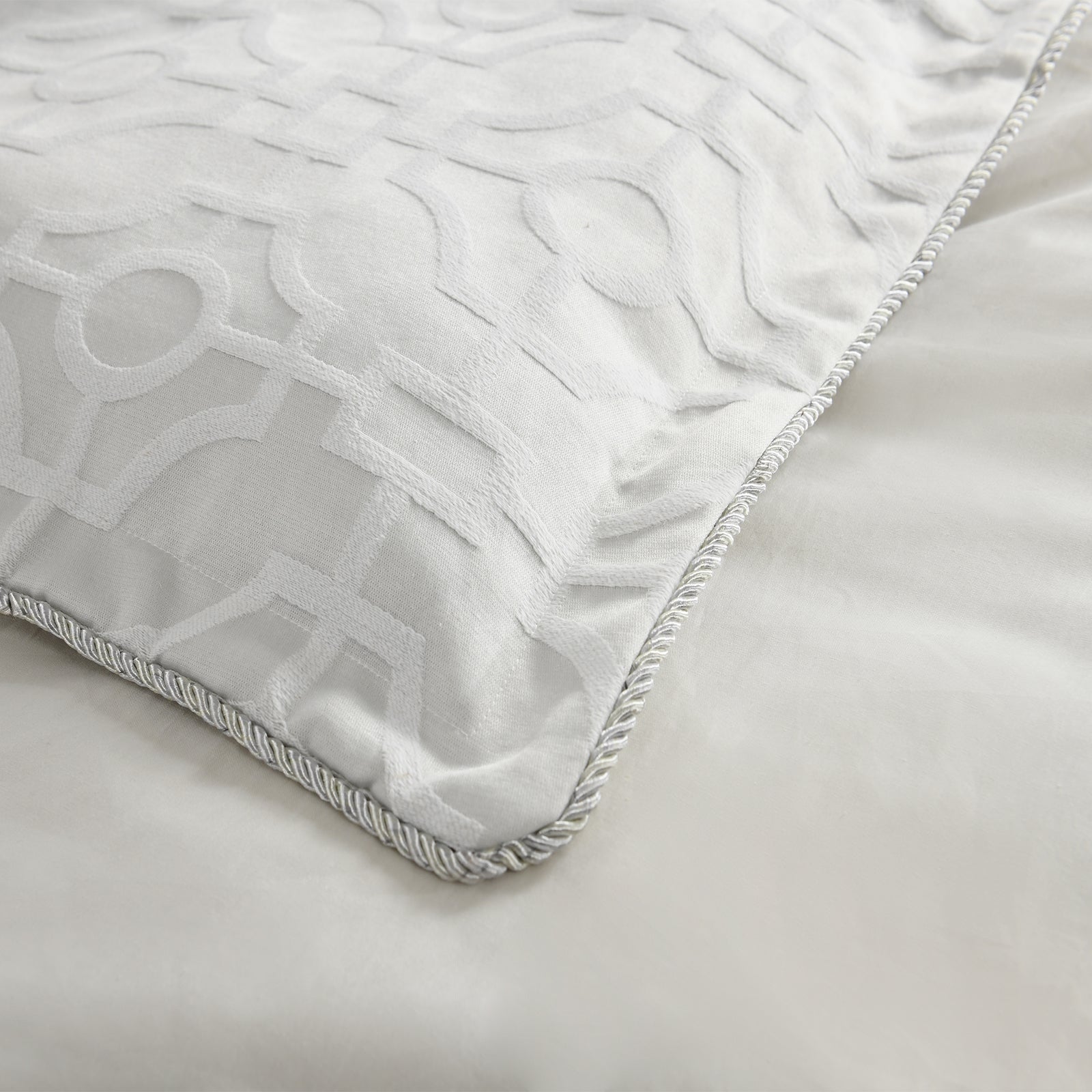 Transform your bedroom with the Balmoral Quilt Cover Set from the Regalia Collection — a bold expression of modern symmetry and design. Its large-scale geometric pattern mimics the structure of a maze, creating a captivating visual rhythm that brings balance and sophistication to your space.