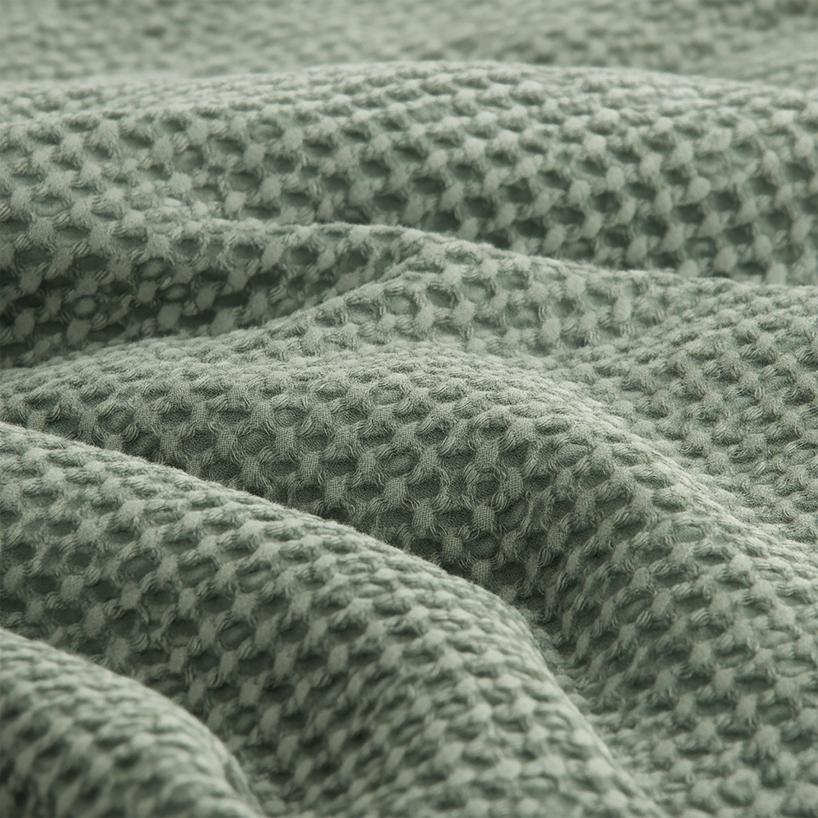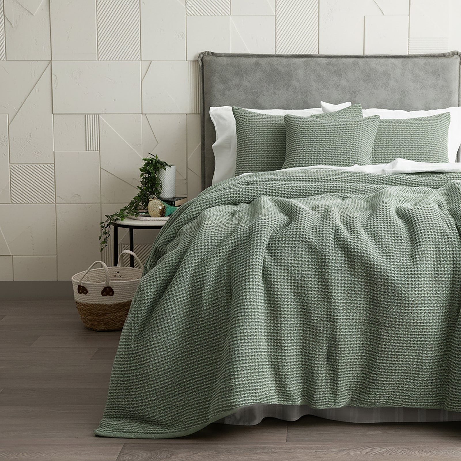 Boronia Stone Washed Cotton Waffle Comforter Set Moss