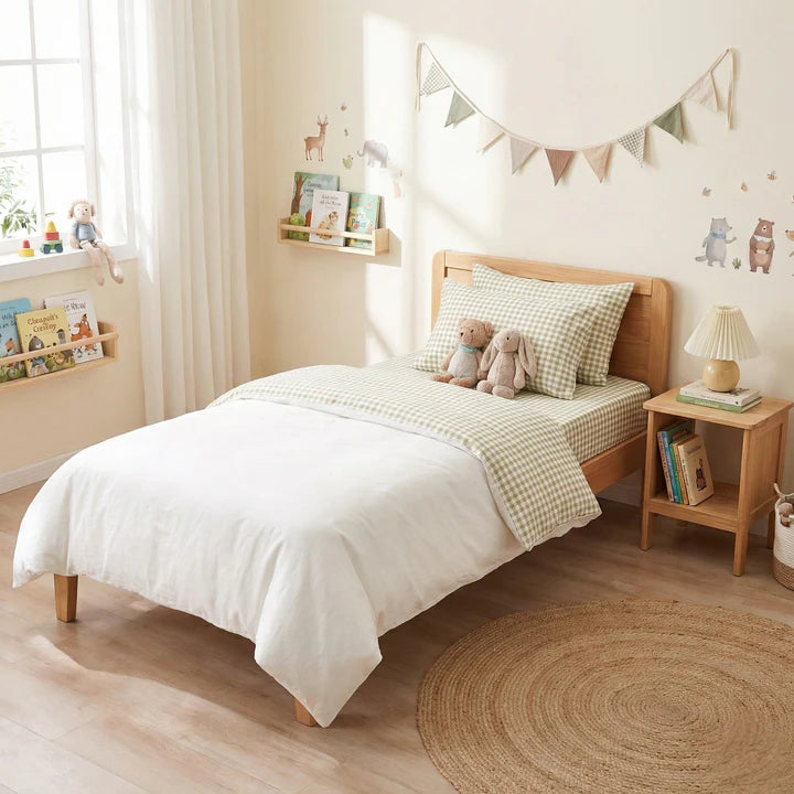 Featuring a timeless gingham pattern, this sheet set is made from 100% long-staple cotton in a crisp 250 thread count percale weave—soft, breathable, & cool to the touch. Designed with deep sides & thick elastic. whether paired with solids or bold quilt covers, these sheets are an easy way to introduce texture and depth to your bed styling. OEKO-TEX® certified & made for everyday comfort & style.