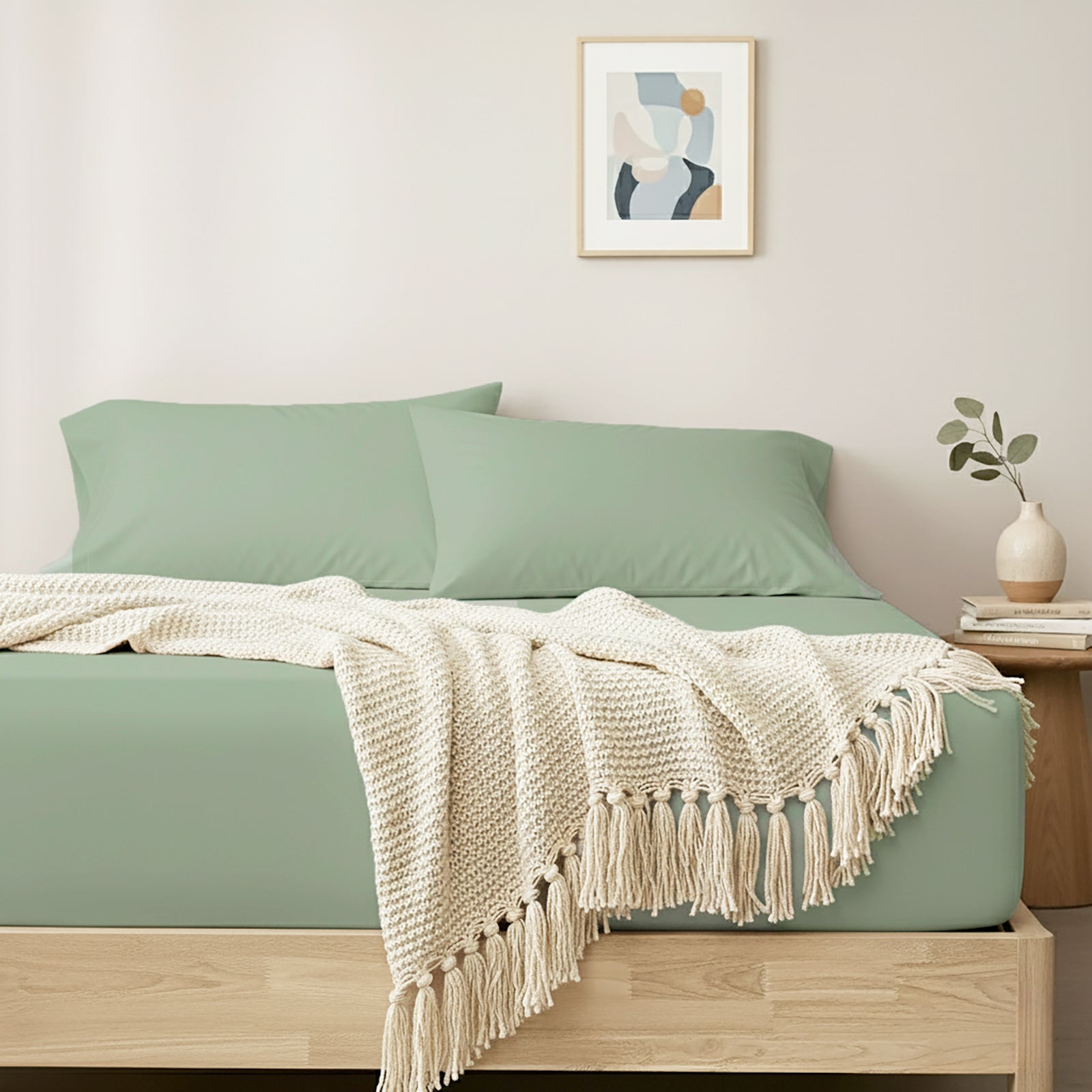 Egyptian Cotton Fitted and Pillow Case Set 400 Thread Count Basil
