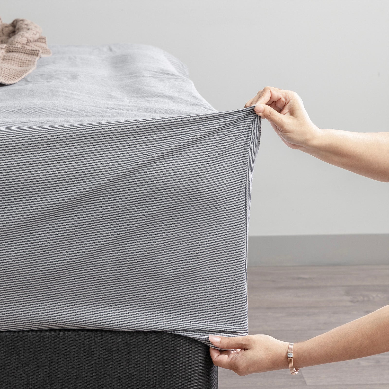 Park Avenue 175 GSM Egyptian Cotton Flannelette Fitted and Pillowcase Set Striped - No Flat Sheet