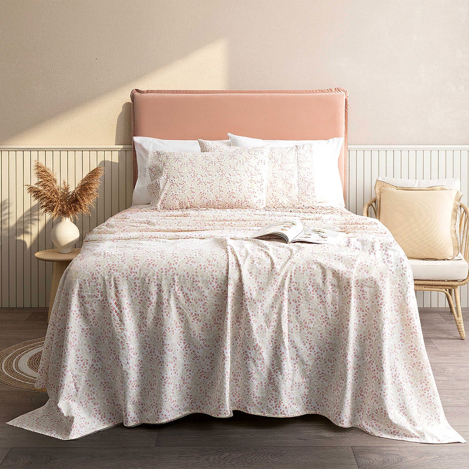 The brushed flannelette fabric feels gentle against the skin while remaining breathable, ensuring you stay snug without overheating. Featuring a delicate mini leaf print, this sheet set adds a subtle, fresh, and seasonal touch to your bedroom décor. The extra-deep fitted sheet is designed to fit securely on deeper mattresses, keeping your bedding in place for a neat, comfortable sleep every night. Durable, soft, and easy to care for. Transform your bedroom into a cozy sanctuary and enjoy restful, indulgent nights with our Egyptian Cotton Flannelette Sheet Set. OKEO Certified.