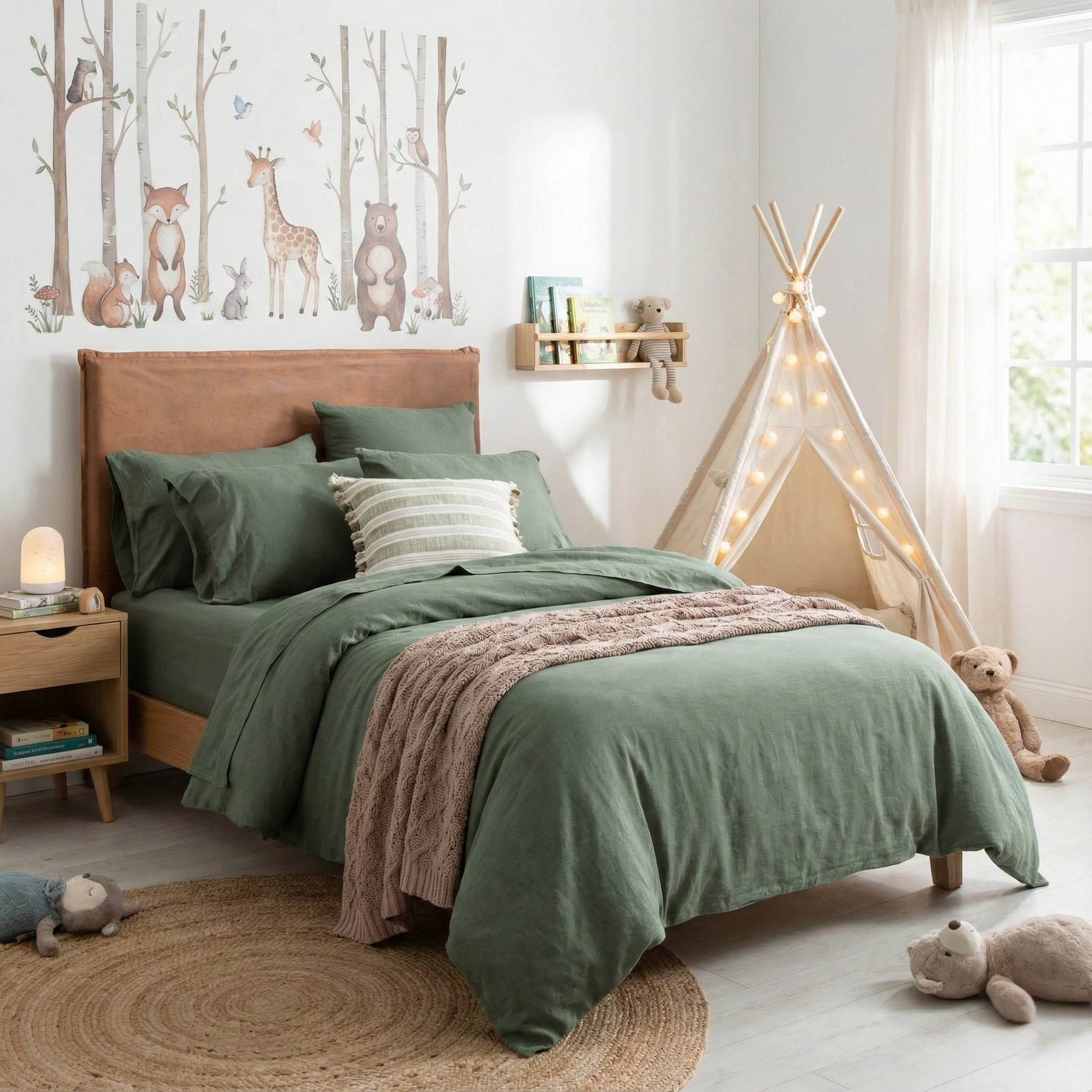 Kids Jersey Quilt Cover Set Olive