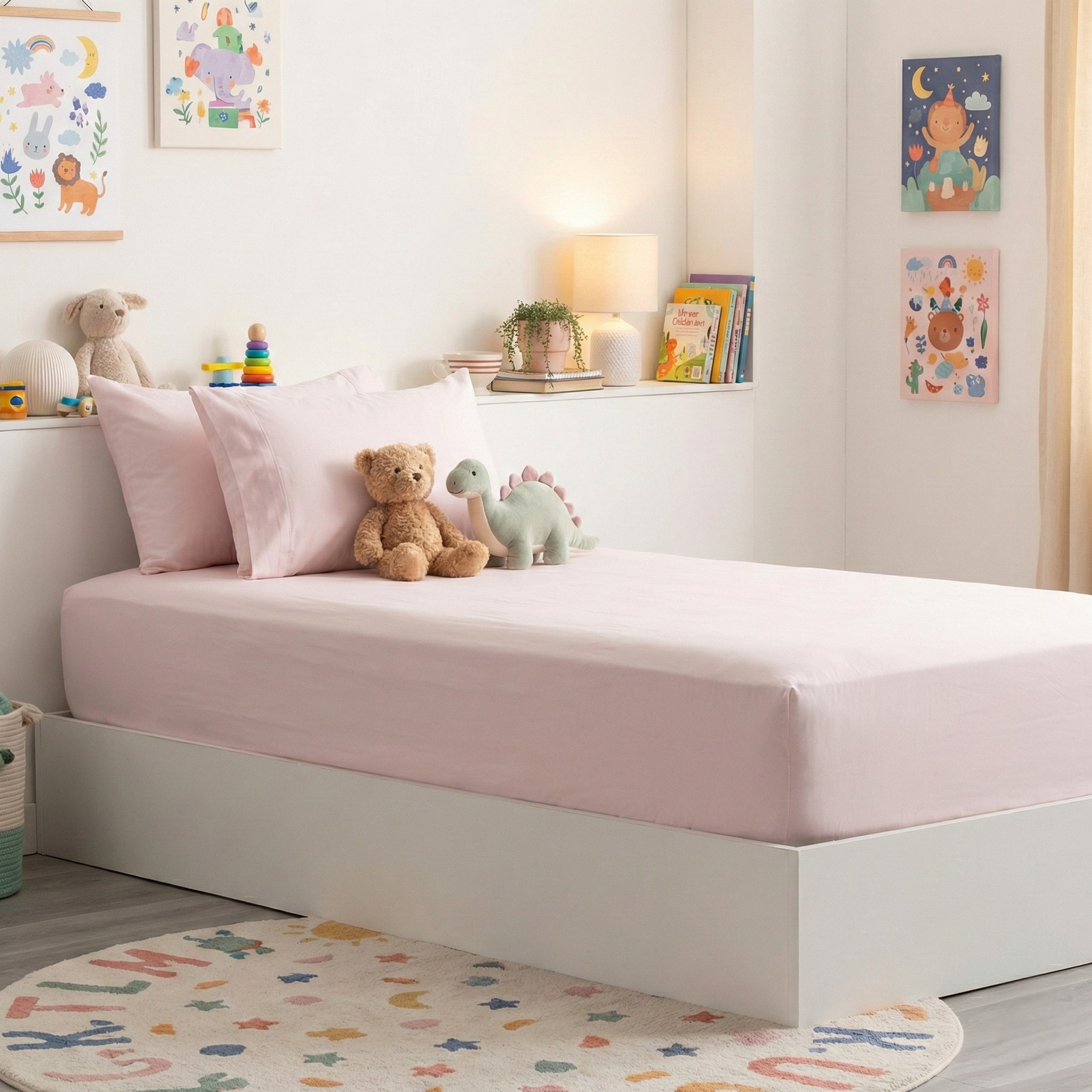 Kids Bamboo Cotton Fitted Sheet & pillowcase Set Peach