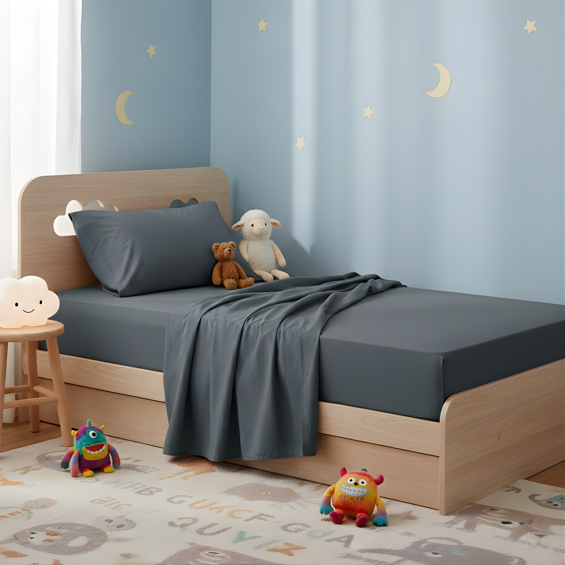 Kids Egyptian Cotton Sheet Set Steel Blue
