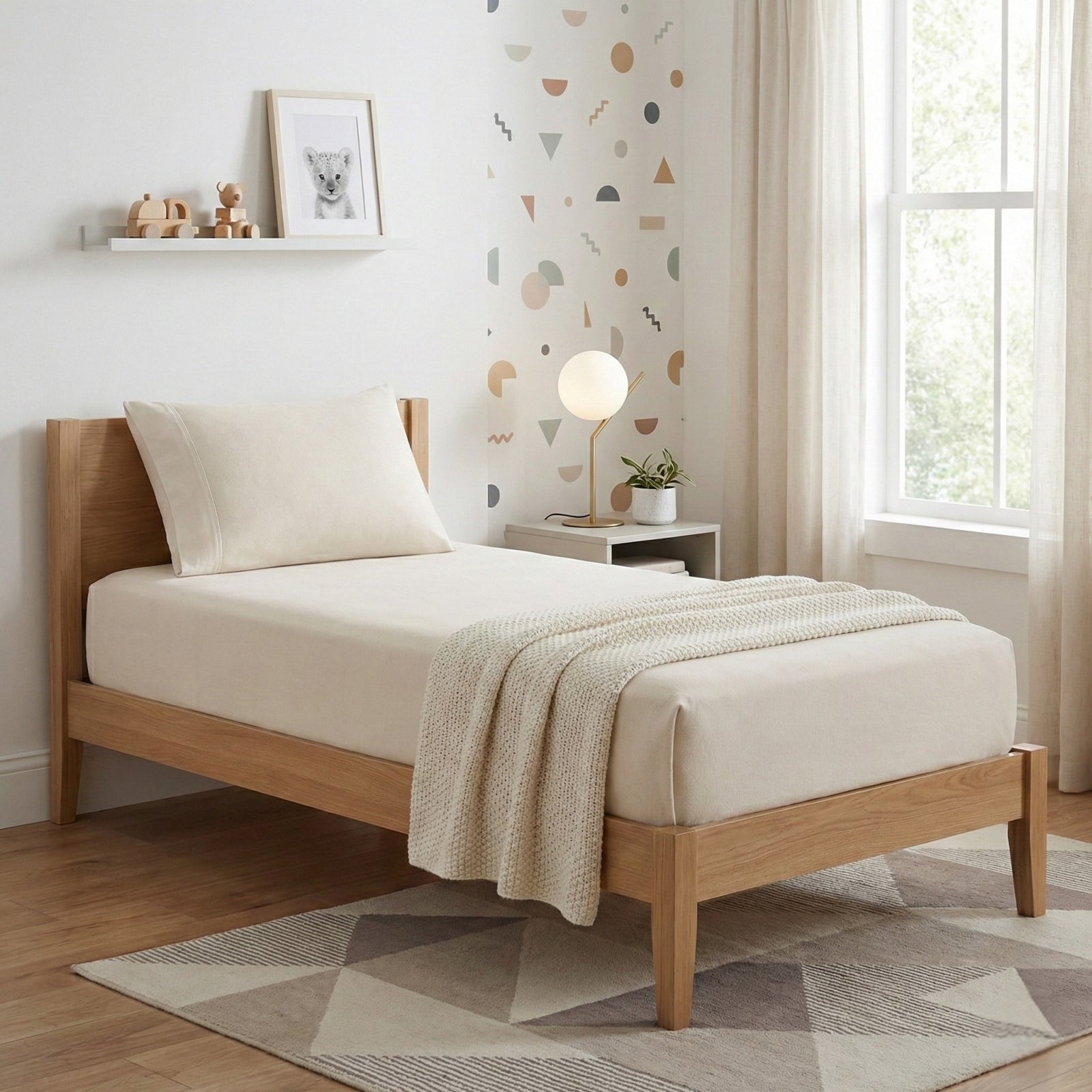 Kids Flannelette Fitted & Pillowcase Set Sand