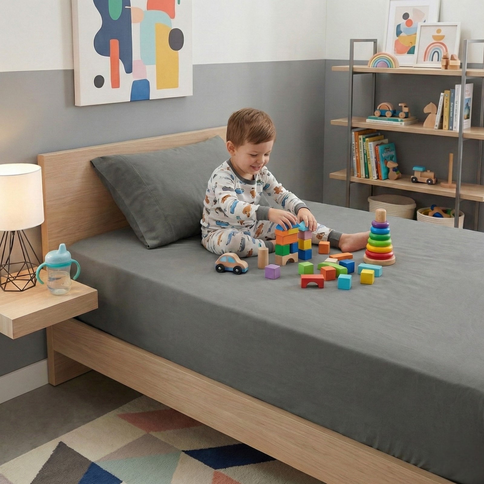 Kids Flannelette Fitted & Pillowcase Set Silver