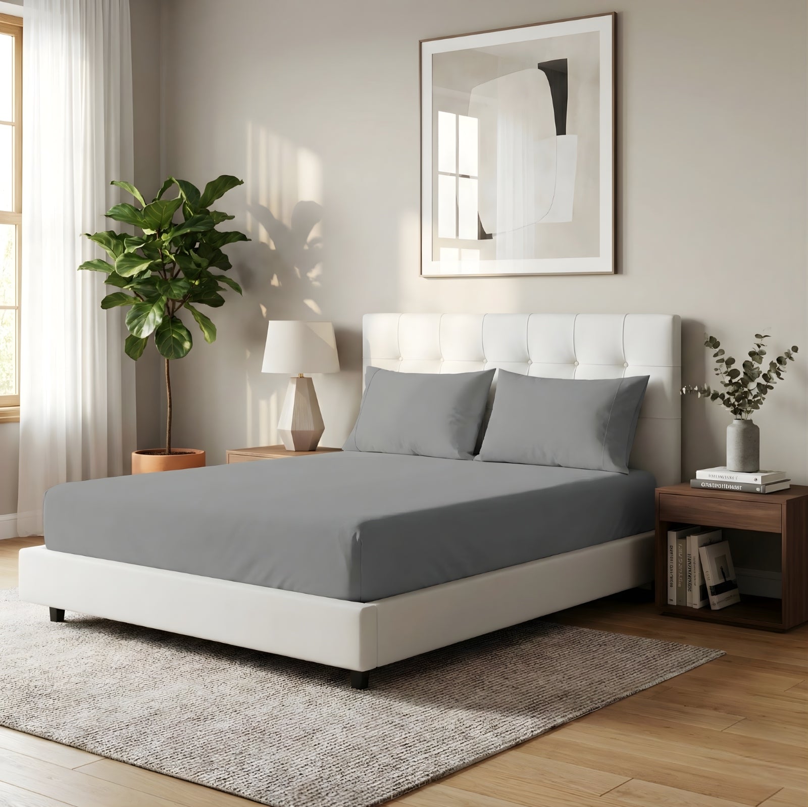 Kids Organic Cotton Fitted & Pillow case Set Steel Grey