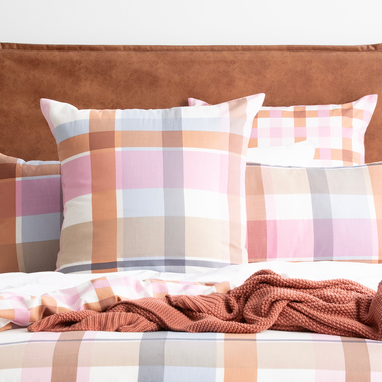 Create an inviting retreat with the Miranda Check Quilt Cover Set. Expertly designed in our Melbourne studio, this design is made from textured cotton slub, using thicker yarns to deliver a soft, matte finish with beautiful depth. The front features a classic plaid check, while the reverse continues the story with a refined, smaller-scale check pattern for a balanced and cohesive room setting.