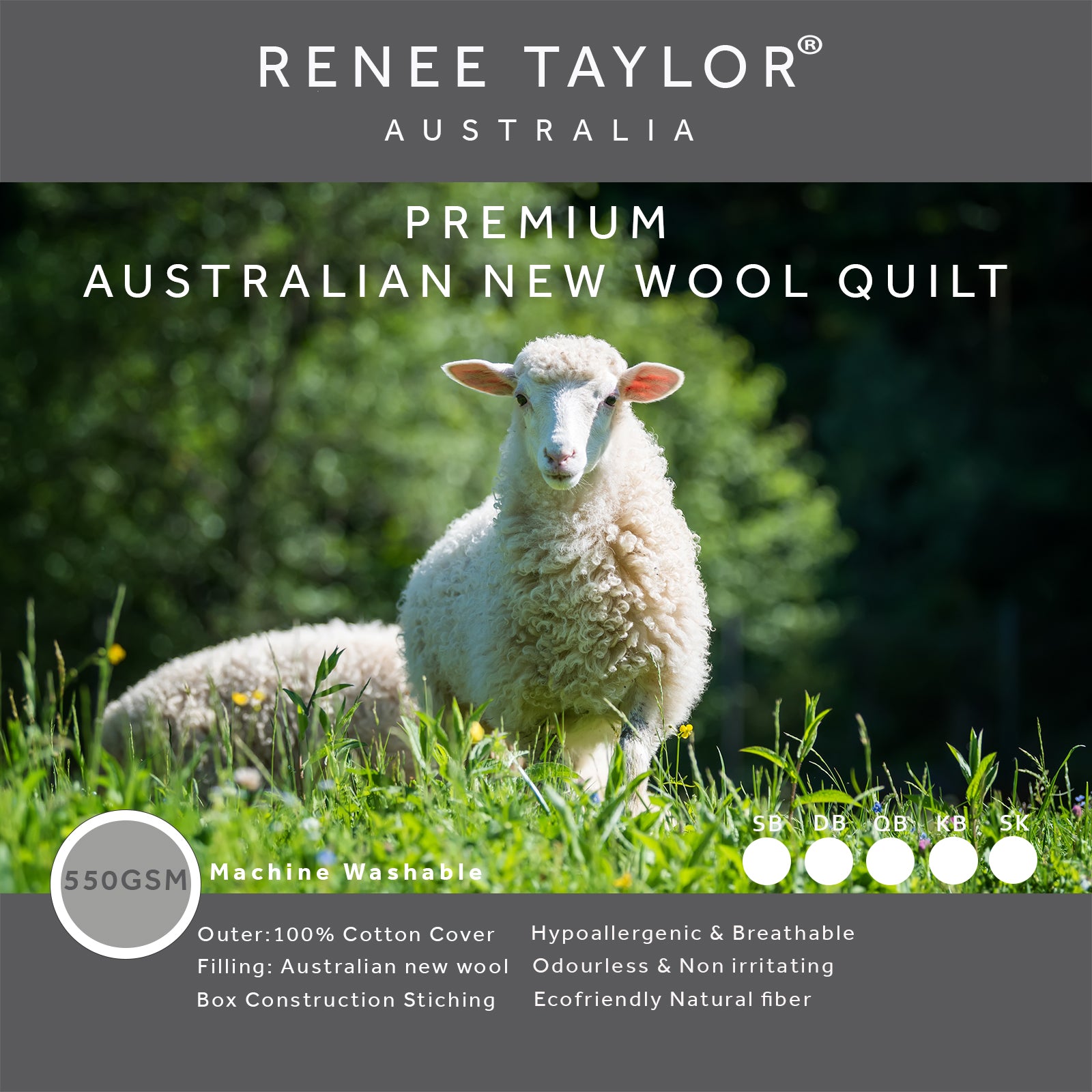 - Australian Pure New Wool Filling 550 GSM.