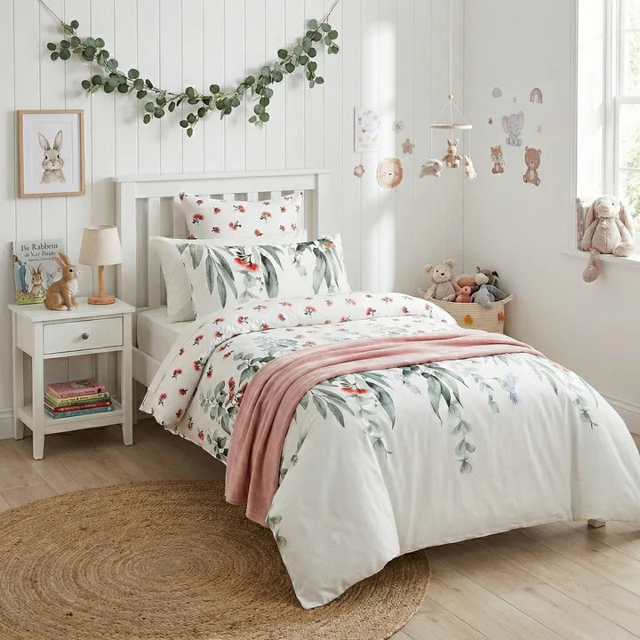 Designed and styled in Australia, the Mallees quilt cover brings a touch of native Australian beauty into your bedroom. Crafted from luxurious 300-thread count cotton Sateen, it offers a smooth and silky feel ensuring utmost comfort. The soft natural shades of native Australian foliage make this quilt cover a perfect match for any home décor, blending effortlessly with both modern and classic interiors. Add on featured European pillowcases can’t be missed when setting up your linen this season.
