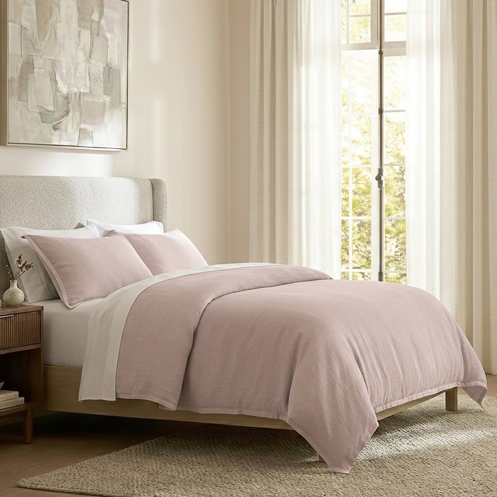 Washed Linen Cotton Quilt Cover Set Woodrose