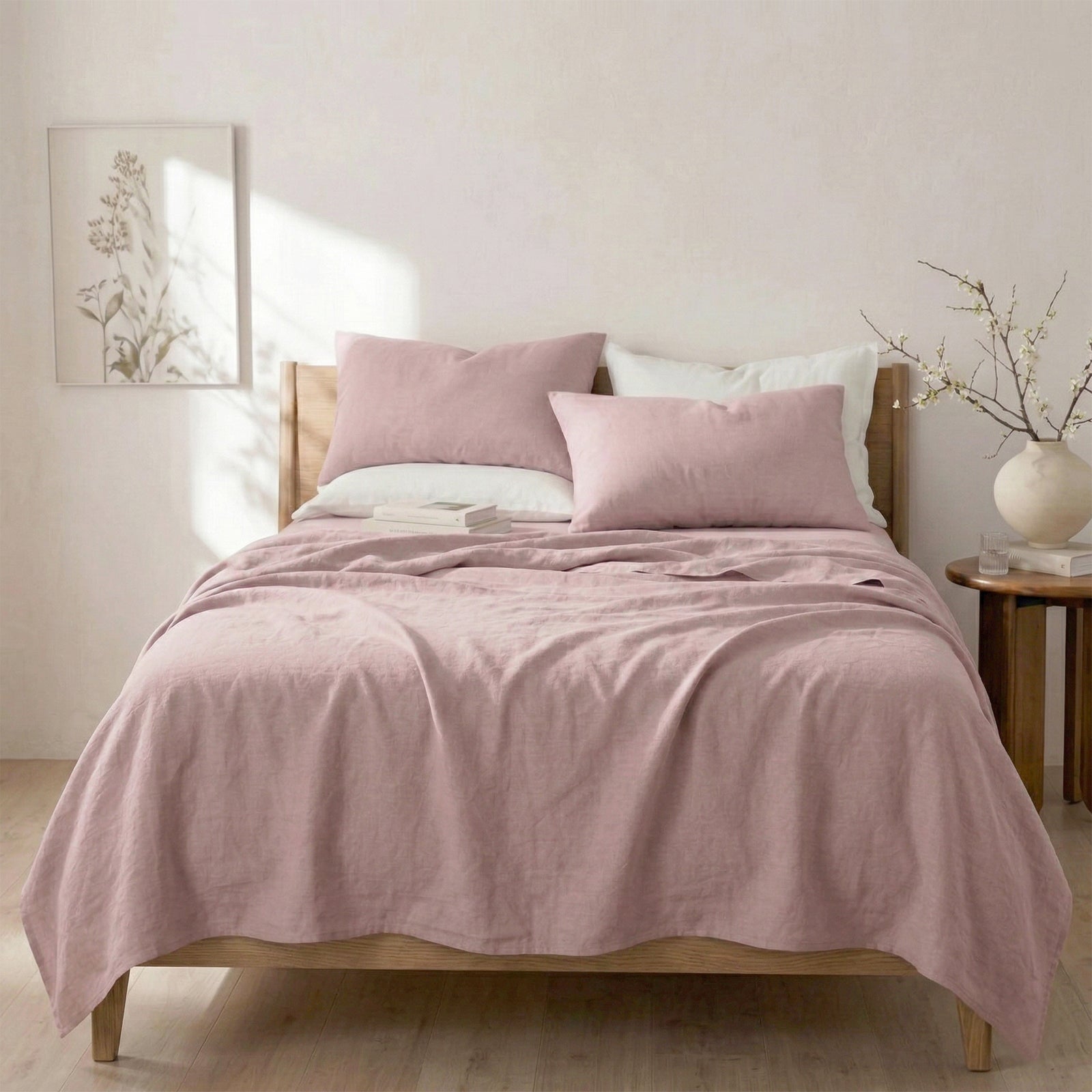 Washed Linen Cotton Sheet Set Woodrose